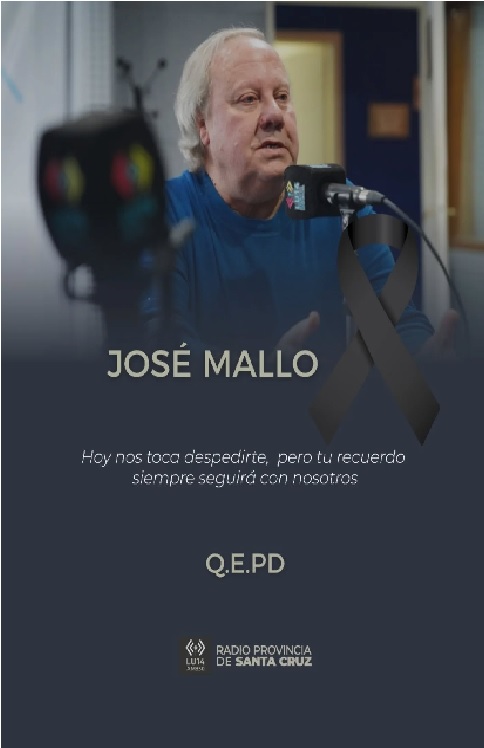 El ambiente del periodismo y el deporte de la ciudad de Río Gallegos se encuentra de luto luego de que trascendiera la noticia del fallecimiento del reconocido periodista y ex director de LU14 Radio Provincia, José Mallo, a los 67 años de edad. El periodista, desde hace algún tiempo, se encontraba atravesando complicaciones en su salud lo cual le generó una neumonía bilateral, por lo que debió ser internado en la clínica Medisur.